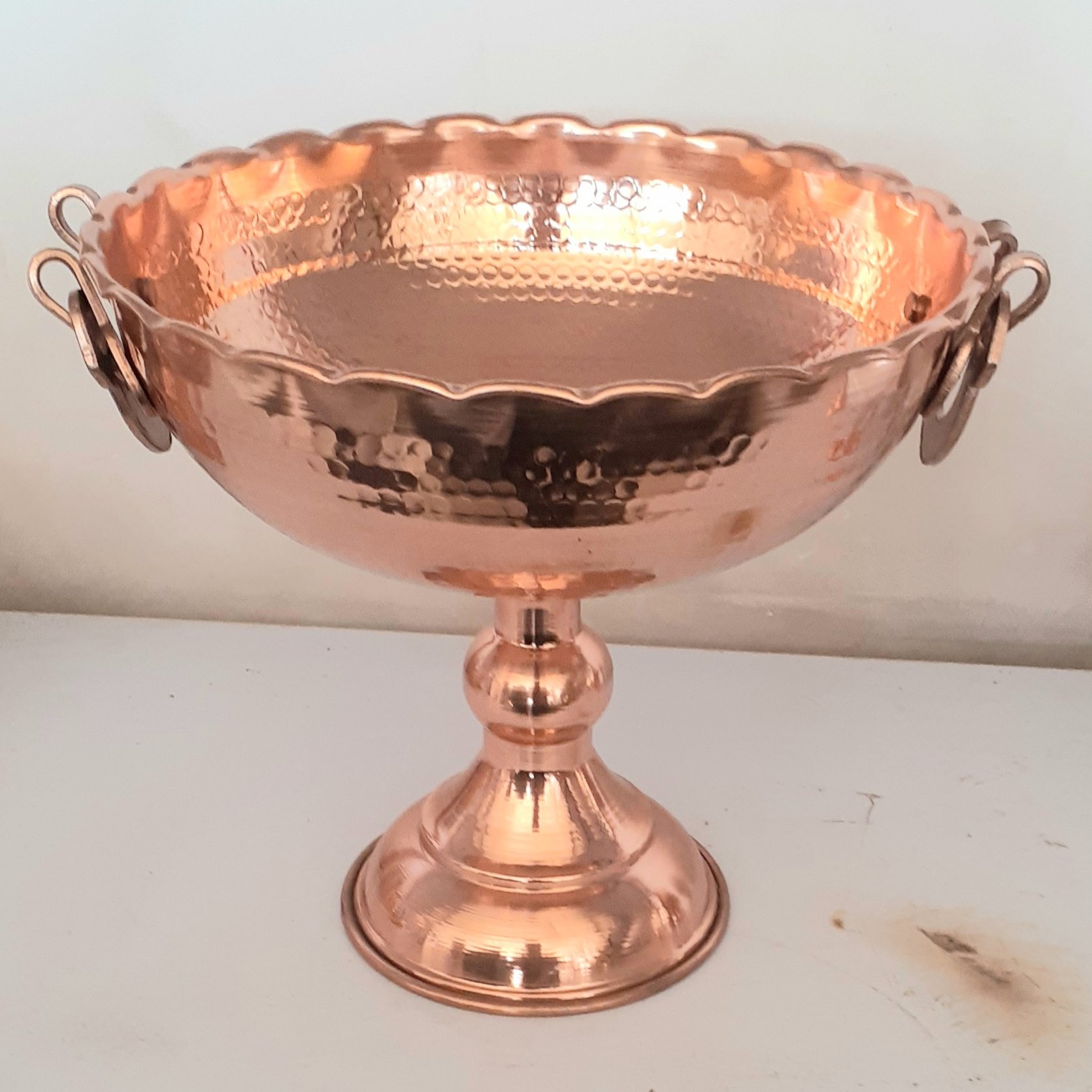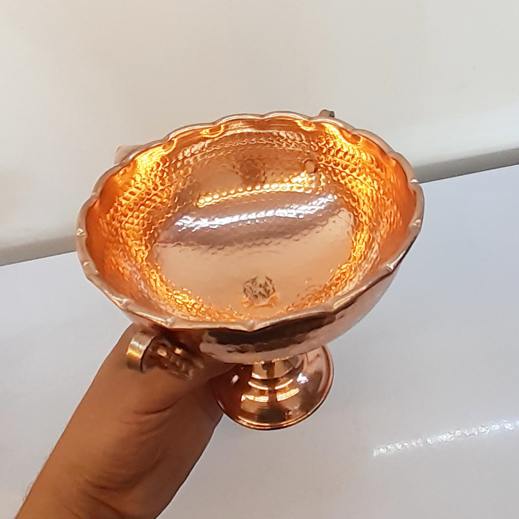 شکلات خوری تک پایه مسی گوشواره دار، قطر ۱۶ سانت ارتفاع ۱۳ سانت