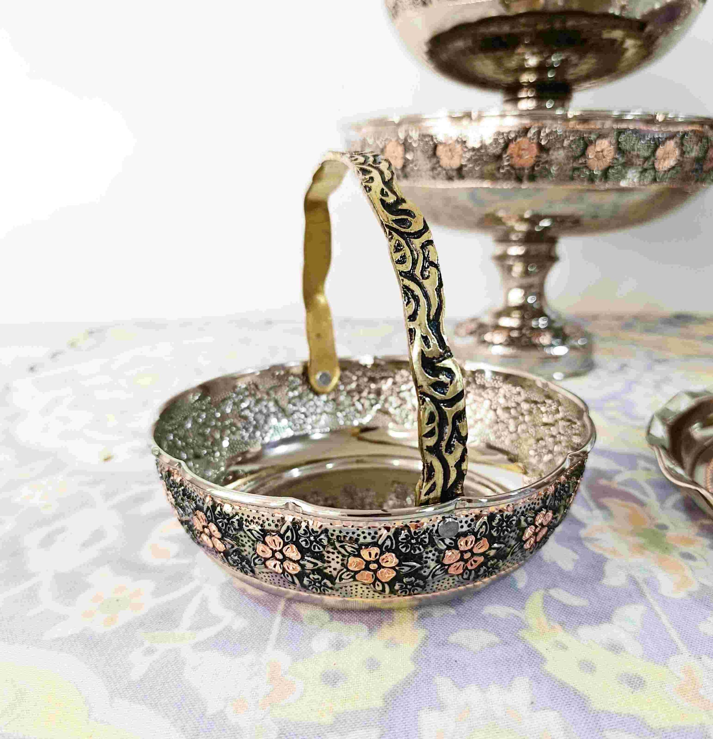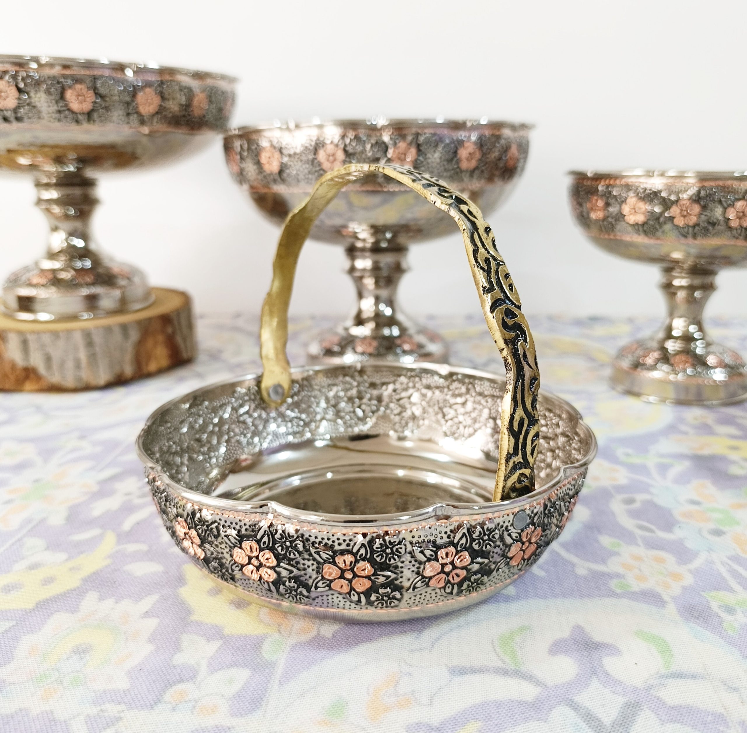 آجیل خوری سبدی مسی روکش کروم و تگل های تراش شده