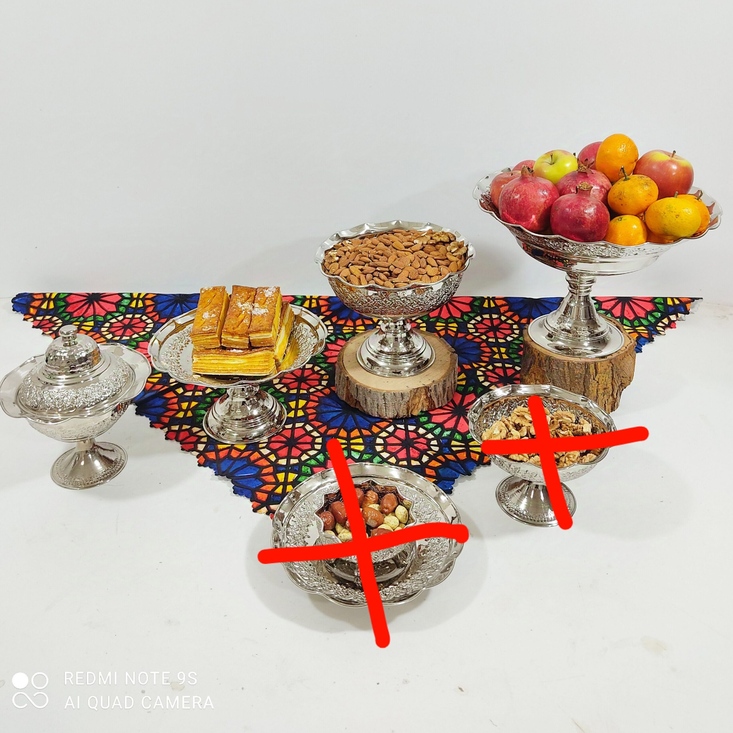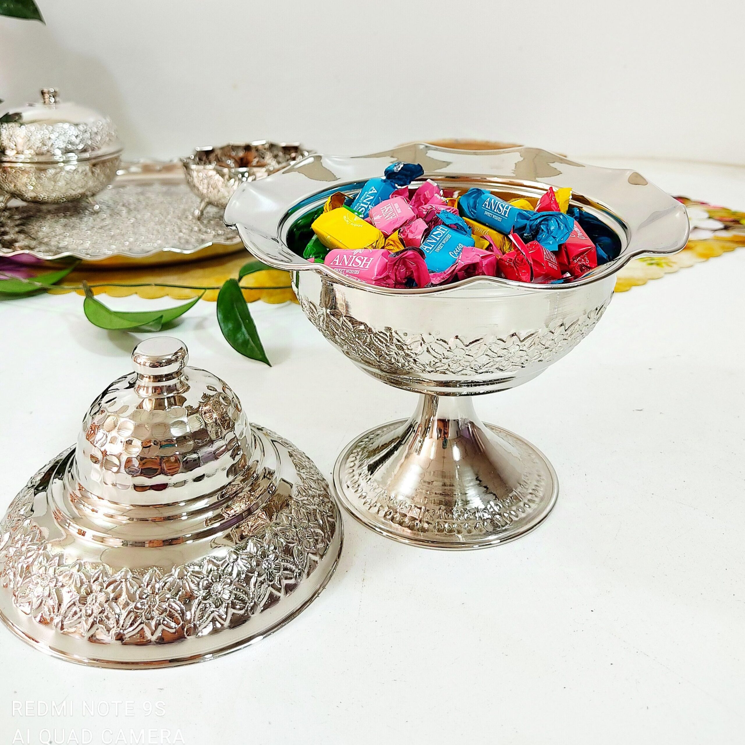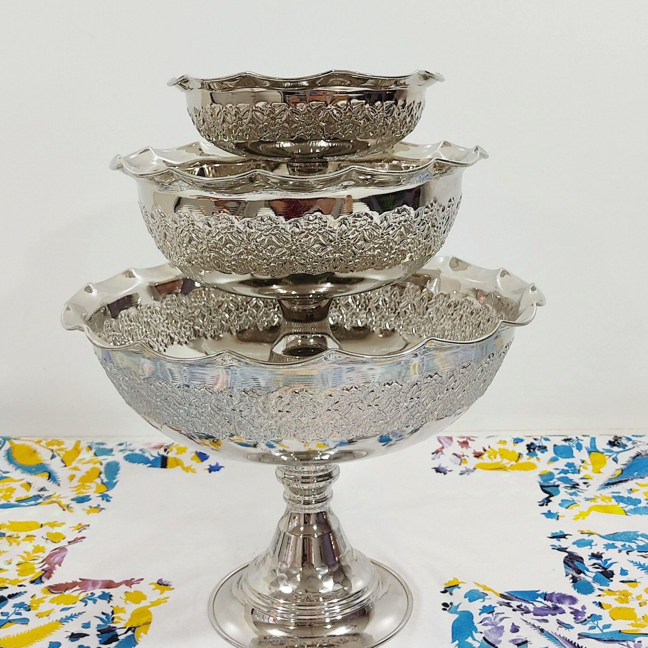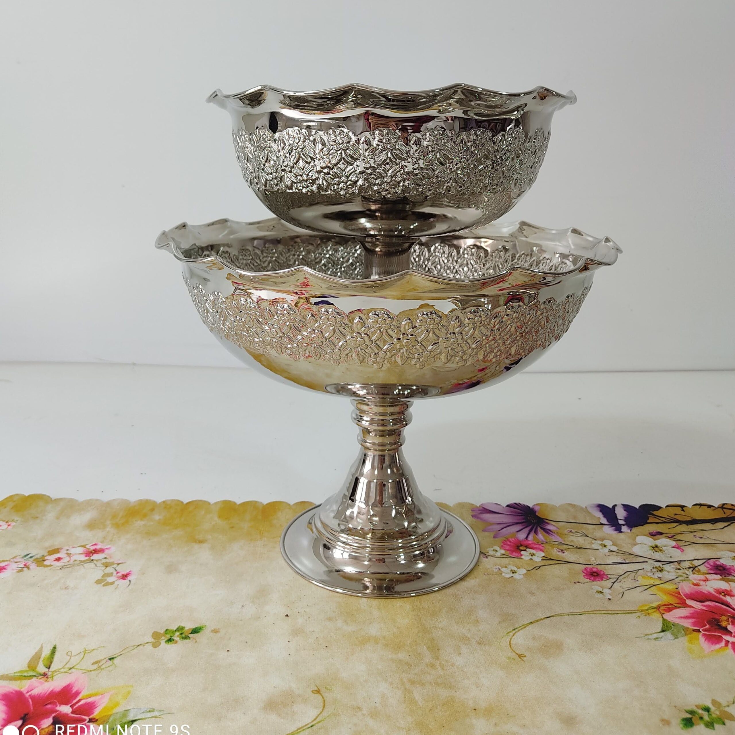 سرویس میوه خوری ،آجیل خوری و شیرینی خوری مسی روکش کروم خیلی زیبا محصول زنجان