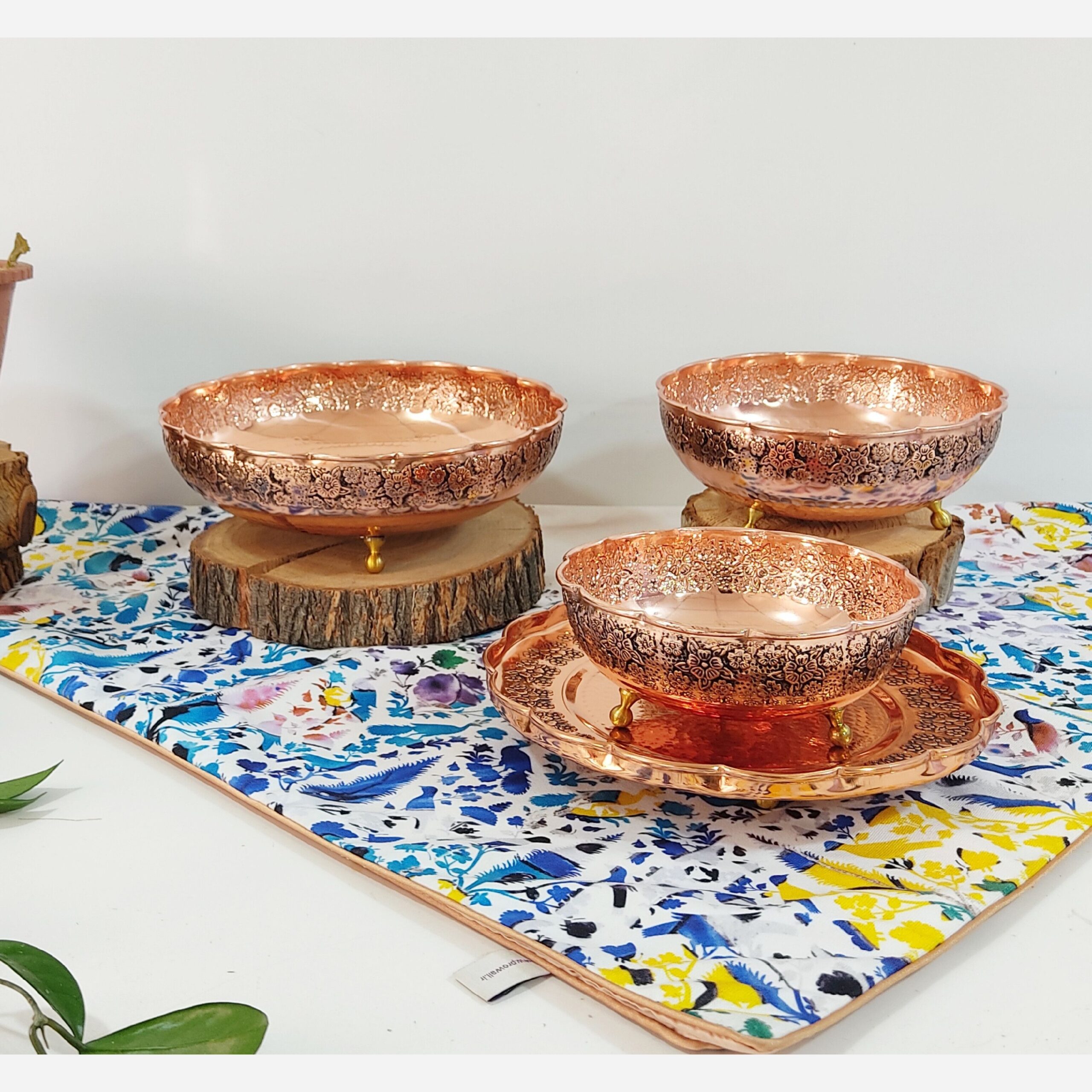سرویس پذیرایی مسی آبکاری کروم  شیک و خاص 4 تیکه  طرح گلبرگ با گل های برجسته و سیاه قلم فروش مستقیم از تولیدی 💫فروشگاه مس رز زنجان