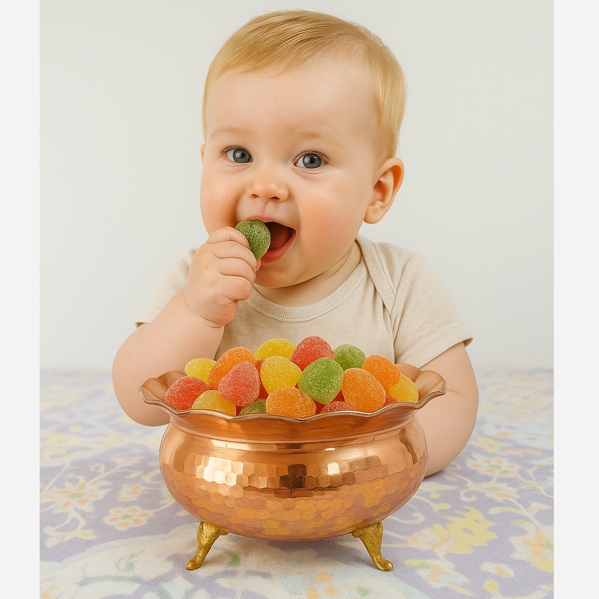 سبد شکلات مسی زیبا با گل های برجسته و سیاه قلم از مس خالص ضخیم ساخته شده شفاف و رو