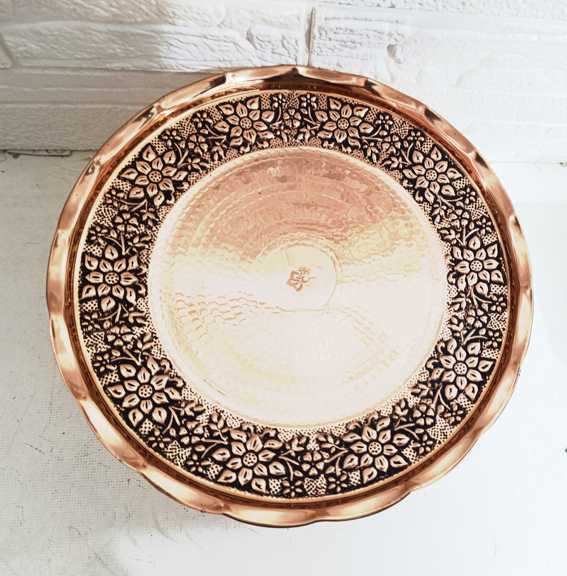 شیرینی خوری مسی گلبرگ مس رز زنجان سیاه قلم با گل های زیبا نانو شده ارسال رایگان قطر 26 سانت.