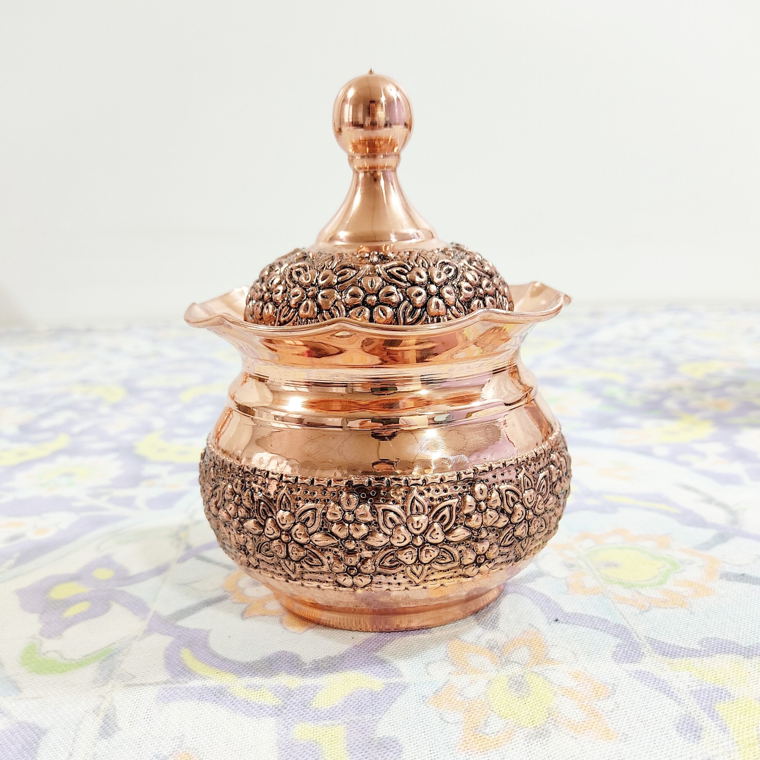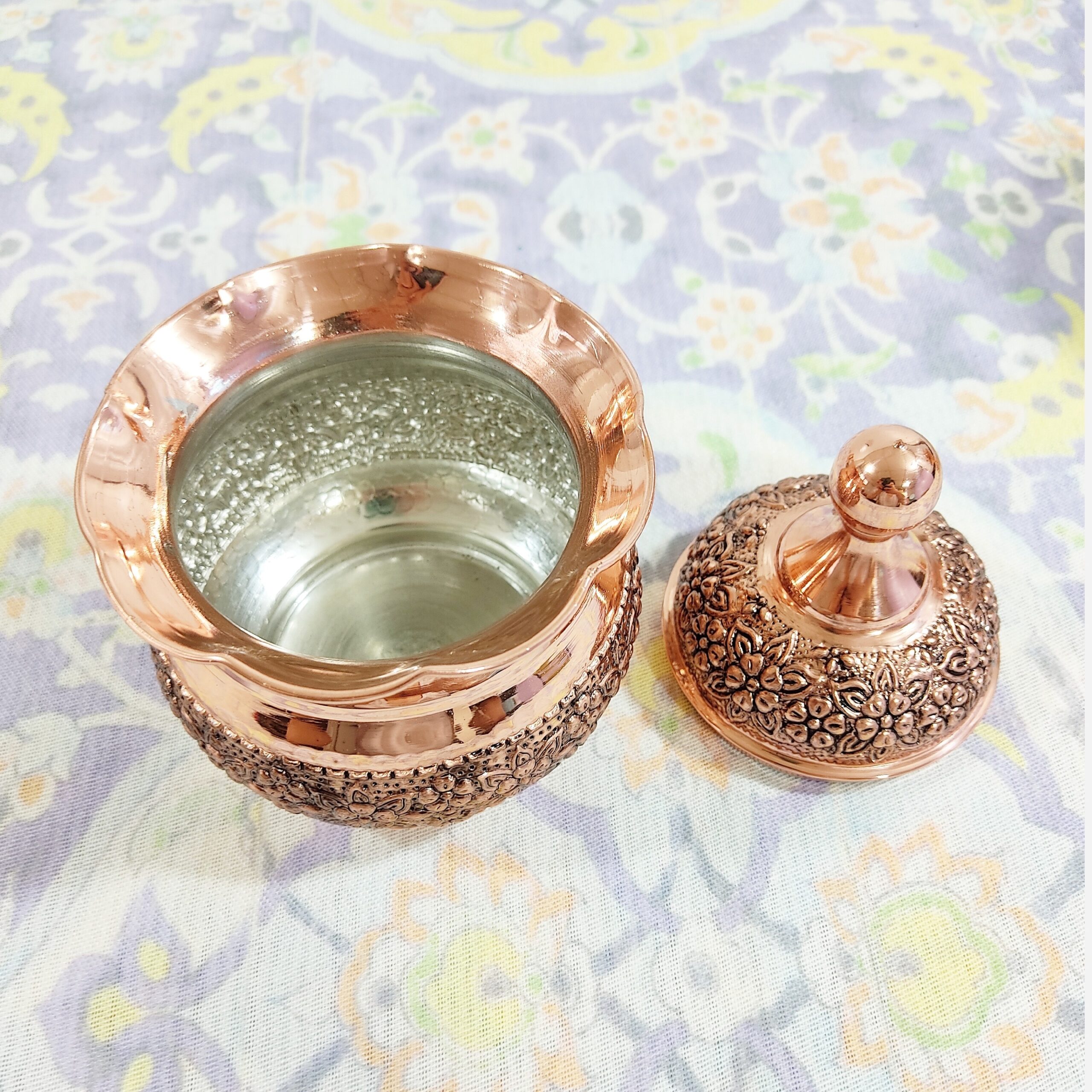 قندان مسی، قندان قلم‌کاری، قندان سنتی، ظرف مسی دست‌ساز، قندان زنجان، ظروف پذیرایی سنتی