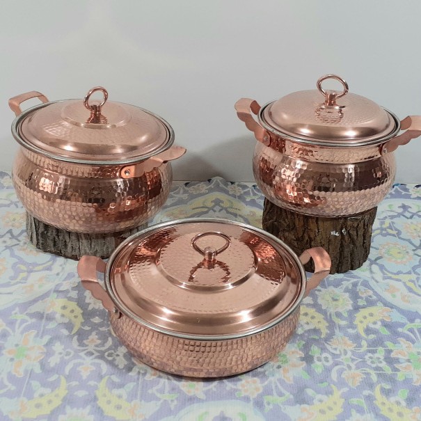 مجمع مسی سه تایی دسته دار و پایه دار نانو شده ارسال رایگان در سه سایز مناسب جهیزیه سرویس کامل