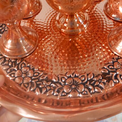مجمع 2 تا با هم مسی دسته دار و پایه دار نانو داخل طرح ترمه و روکش قلع شده و برای مواد غذایی مثل برنج و سالاد مناسب است