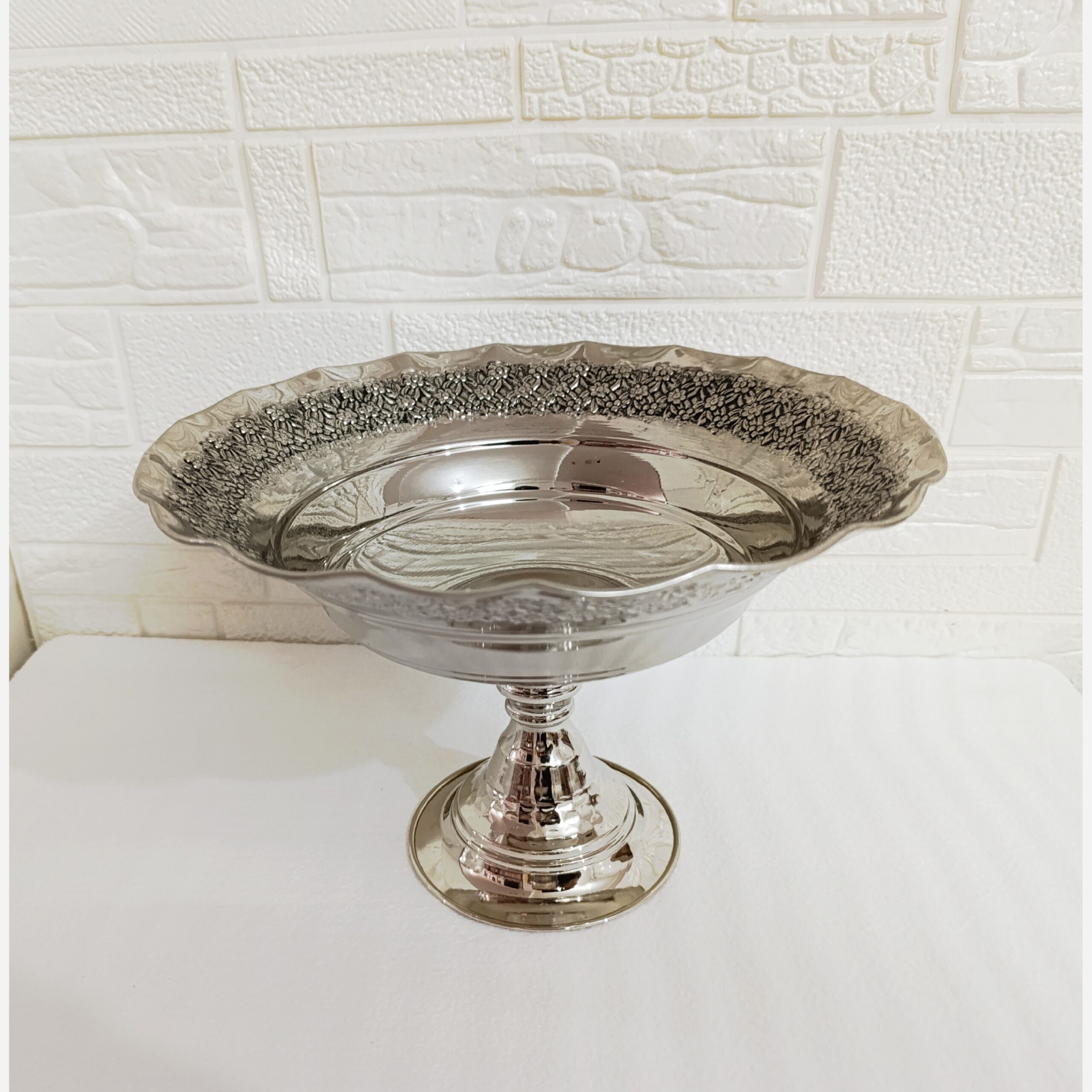 میوه خوری و آجیل خوری مسی روکش کروم سیاه قلم طرح گل برجسته