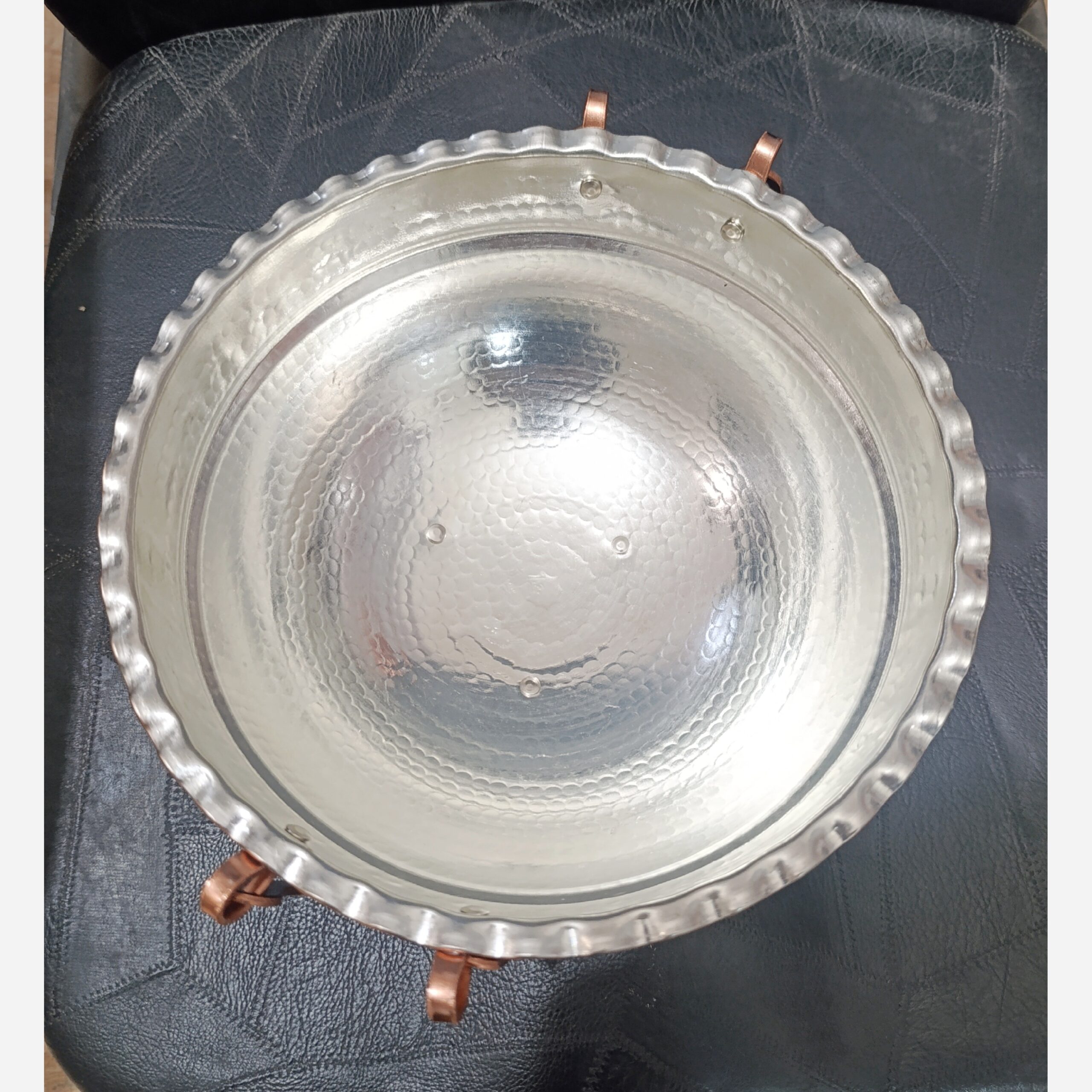 سینی مسی  طرح ترمه تراش مسی و روکش قلع هر دو به یک قیمت به انتخاب مشتری قطر 28 ضخیم