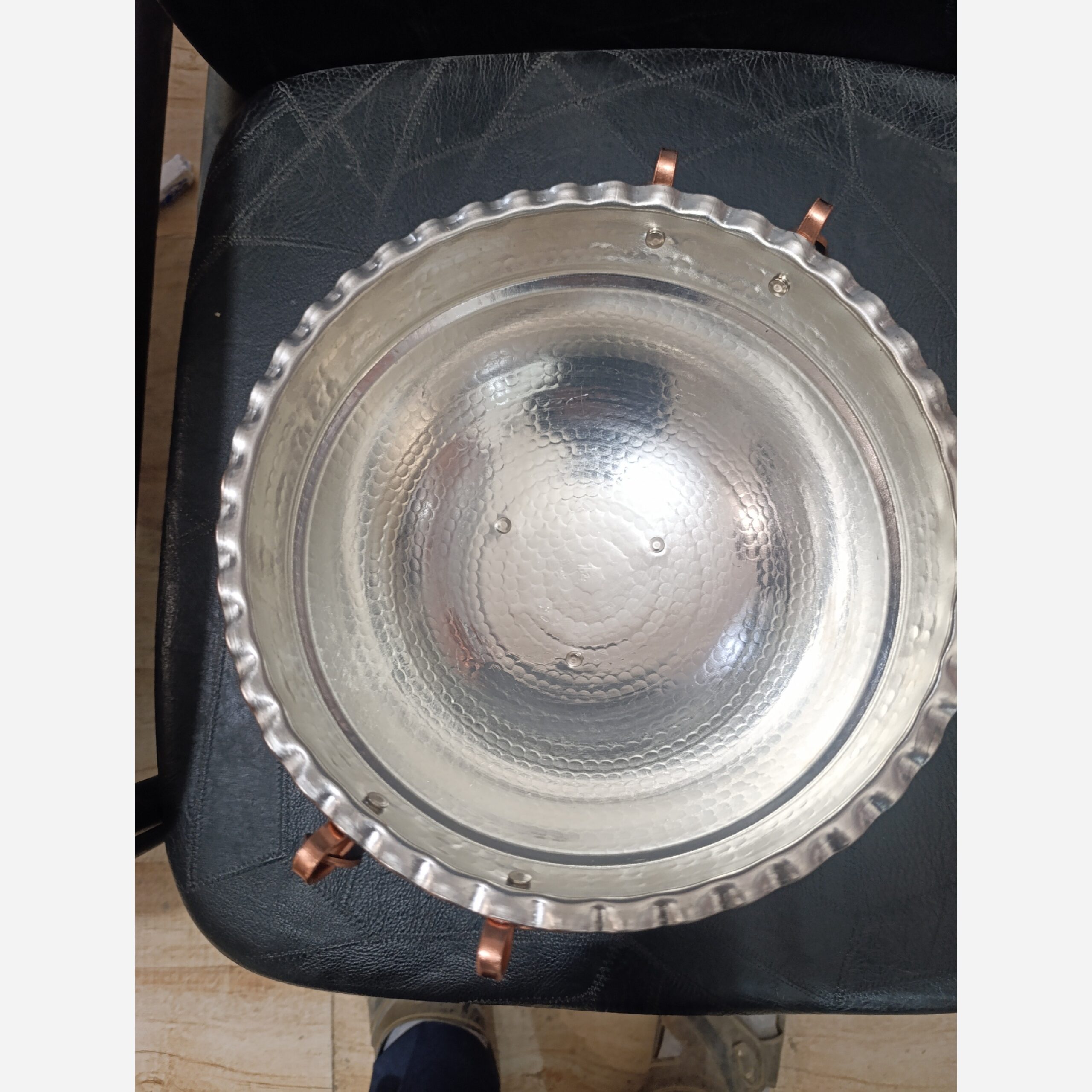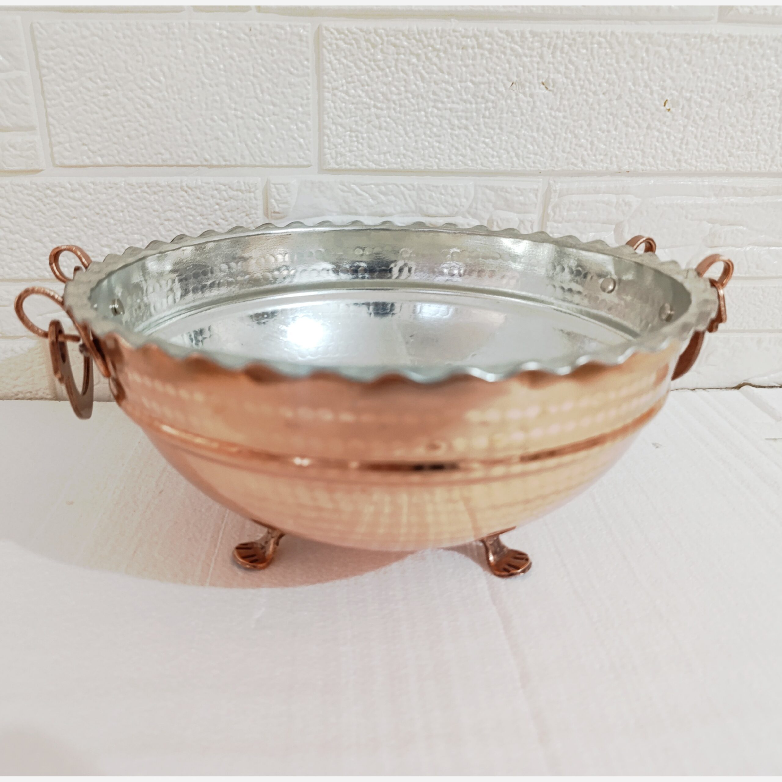 آجیل خوری سه پایه ، قطر 19 ، ارتفاع 11سانت ، وزن410گرم ، دسته گوشواره ای ، داخل قلع ، چکشی ، محصول زنجان، ارسال رایگان ، دور کنگره نانو رنگ ثابت