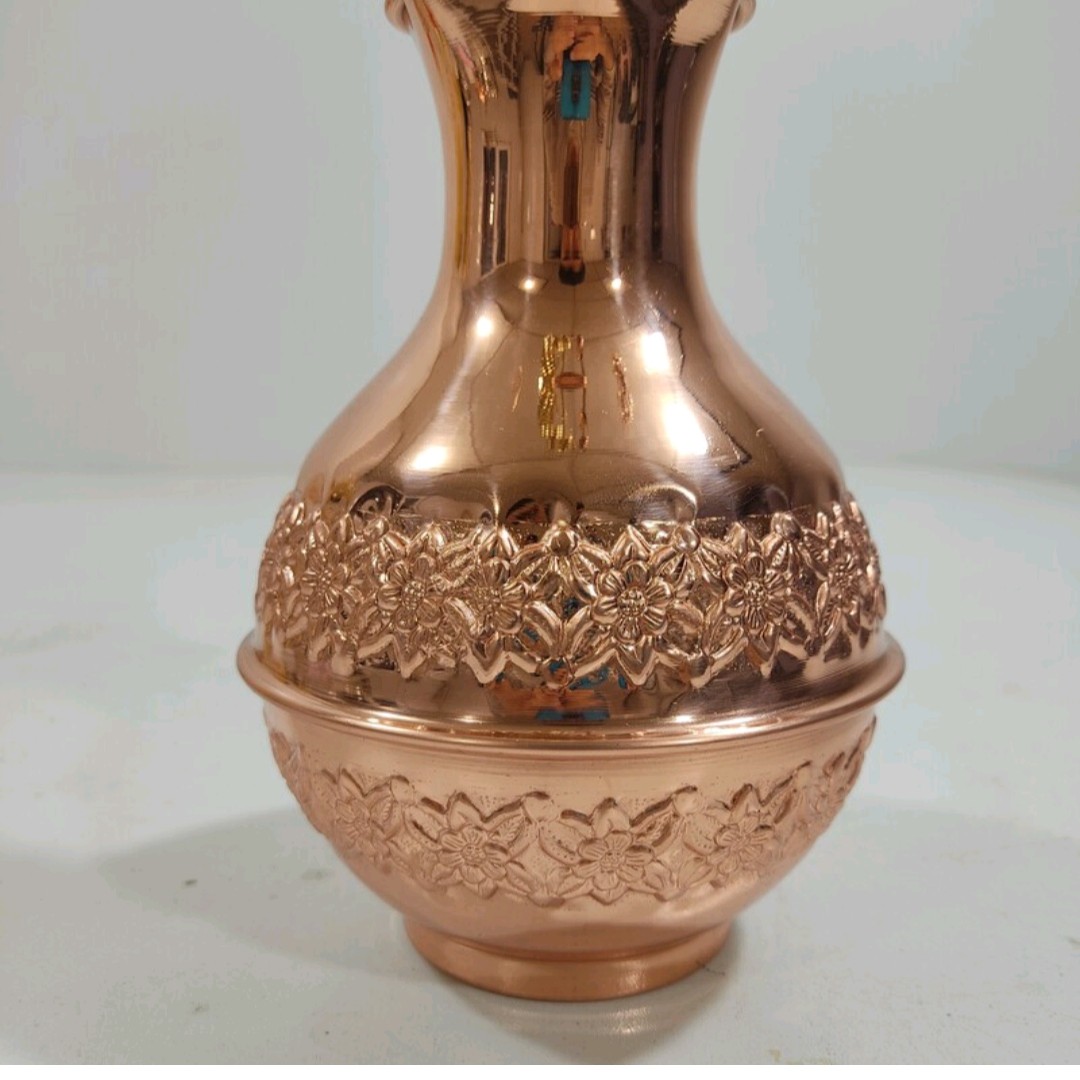 گلدان مسی نانو شده به همراه ۵ گل سنبل مسی نانو شده ارتفاع گلدان ۱۹ سانت محصول زنجان ارسال رایگان